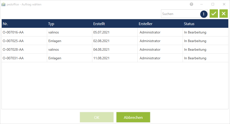 Durch die Eingabe der kompletten oder einem Teil der Auftragsnummer im Suchfeld