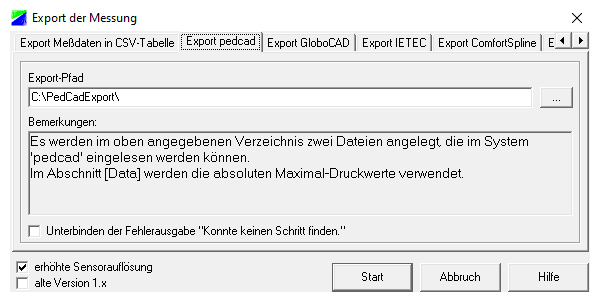 . The Medilogic software will start. Perform a measurement and export it via Data ⇒ Export… ⇒ Export pedcad Fig. 2 and close the Medilogic software.
