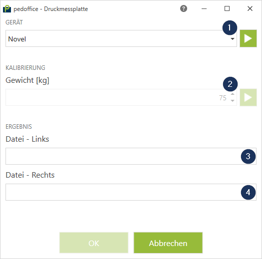 Depending on the FootWork version, the customer is already selected after the start. If the customer is not selected, you need to select the customer name and start a dynamic measurement. After saving the measurement, export it as an .apd-file and close the FootWork software. The pedoffice should have recognized the exported measurement. This can be recognized by the corresponding entries in the fields „file left foot“ and „file right foot“.