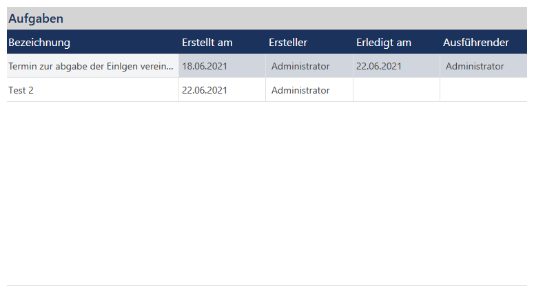 befindet sich einen Aufgabenliste mit noch nicht erledigten Aufgaben aller Kunden an. Die Aufgaben Liste 1 in der Kundenansicht zeigt nur die zum aktuellen Kunden gehören Aufgaben an. Sie zeigt auch die erledigten Aufgaben mit an.