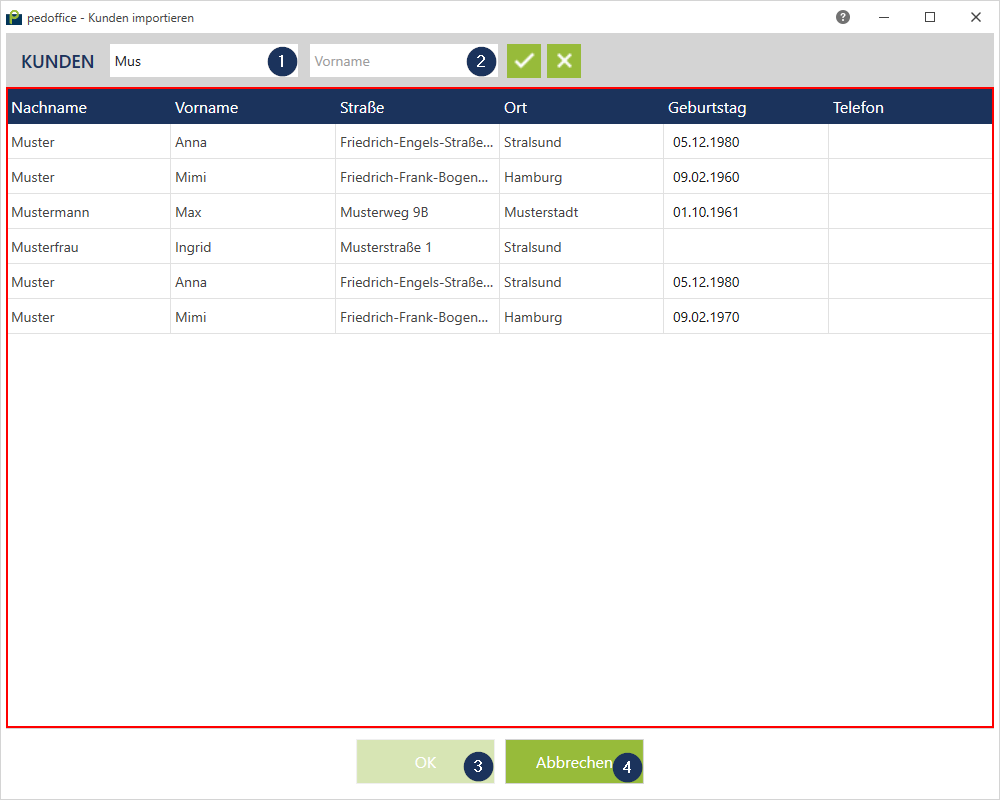 Markieren Sie den zu importierenden Kunden in der Kundenliste