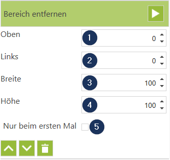 | Links | Beginn des Bereichs der entfernt werden soll, in Pixeln vom linken Bildrand. | ||